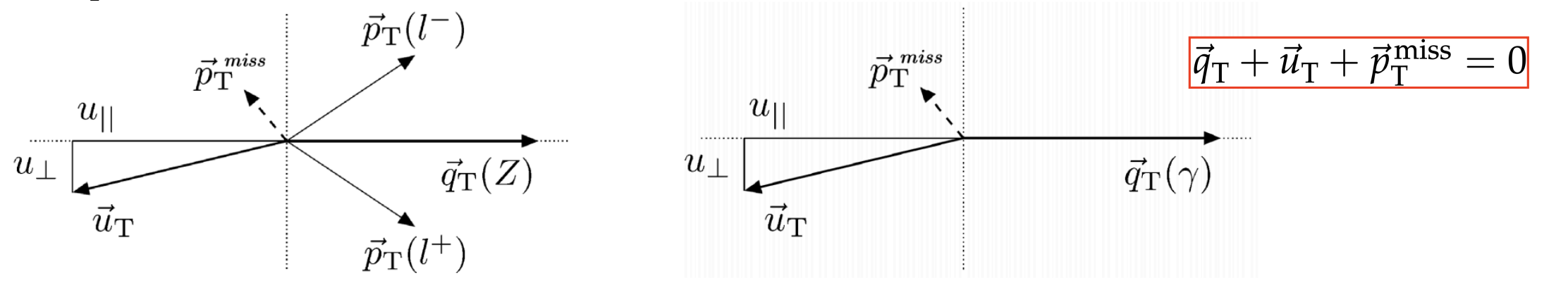 where \(\vec{q}_{T}\) is the transverse momentum of the Z boson, and \(\vec{u}_{T}\) is the hadronic recoil.